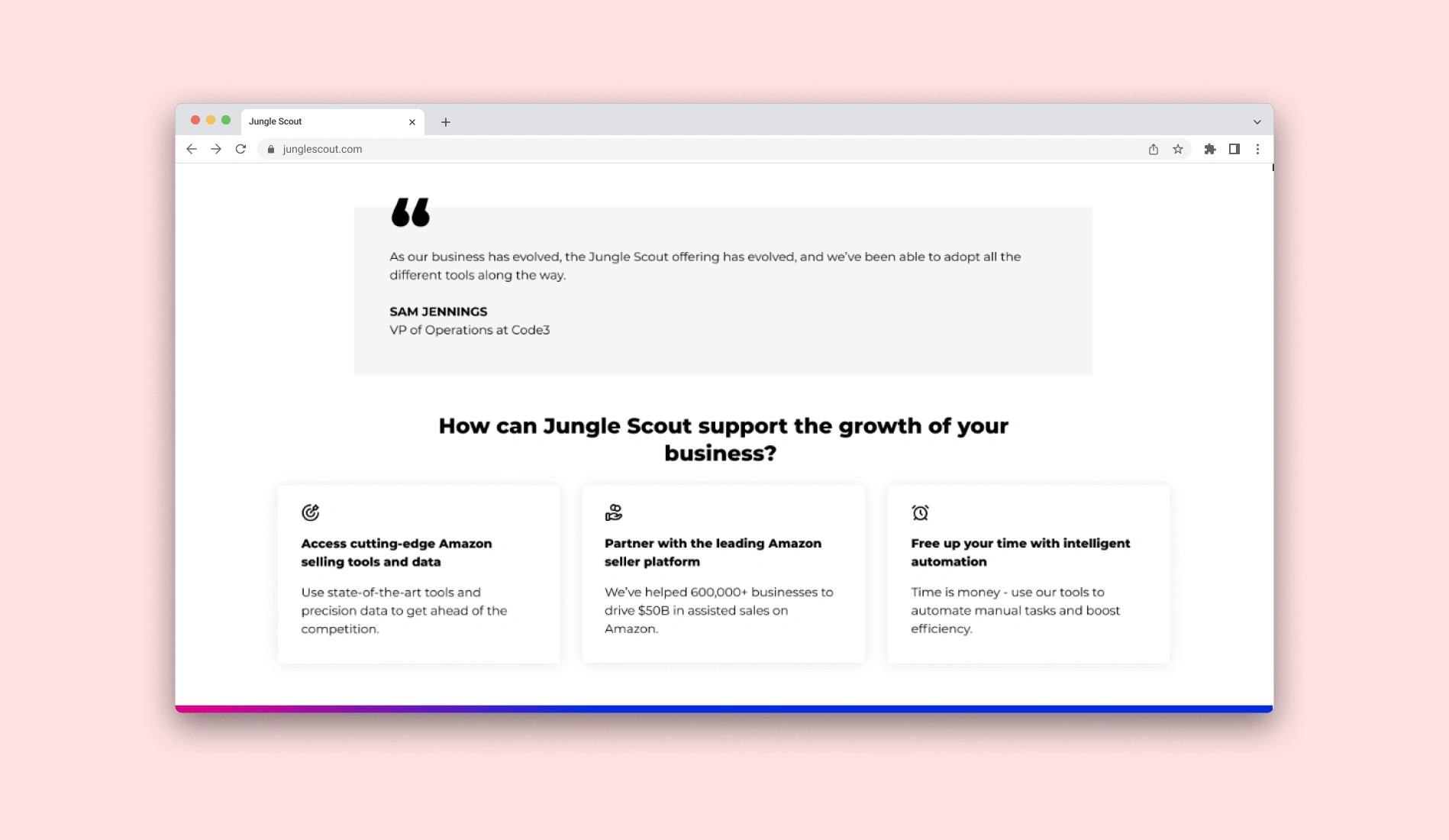 While Jungle Scout’s brand identity was clear, the original design leaned heavily on neutral tones—resulting in a flat, overly minimal look.
