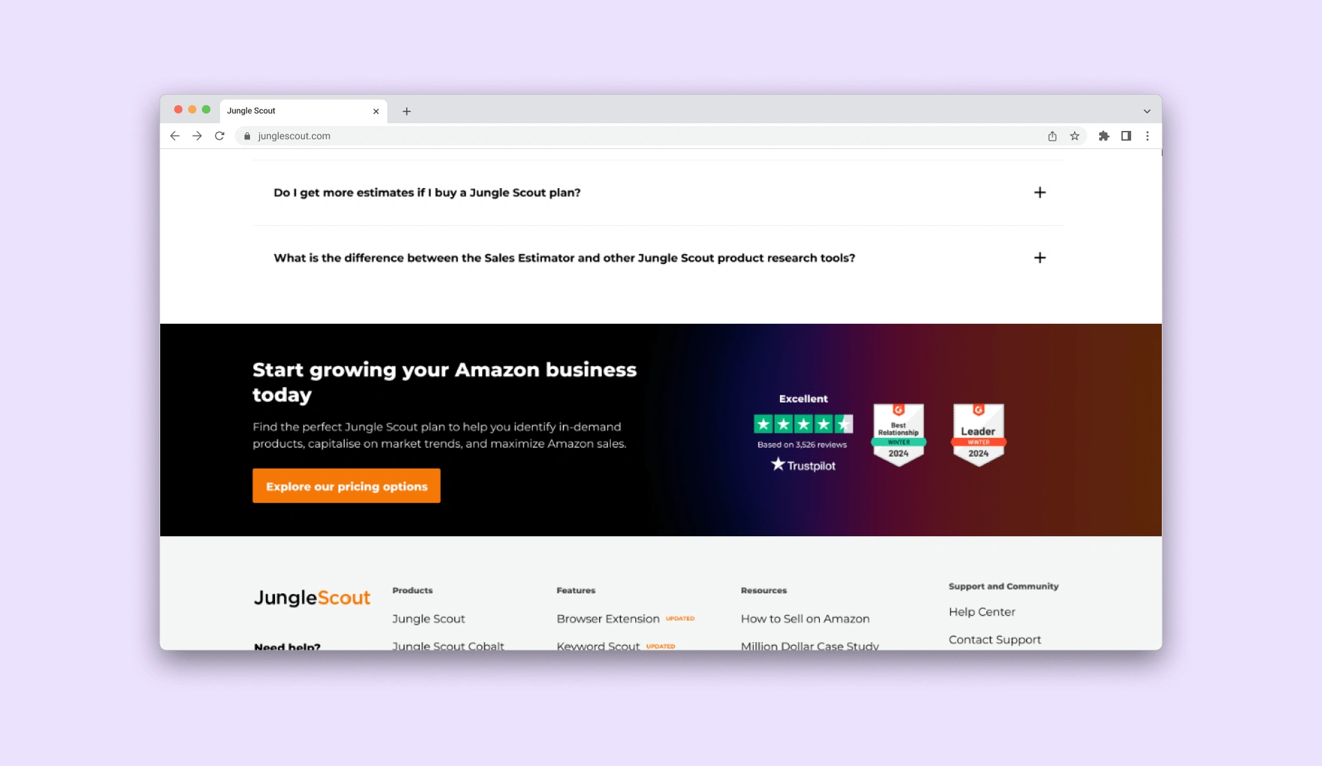 The redesigned Sales Estimator page was well-received by stakeholders, who highlighted the improved user experience, clearer structure, and stronger engagement. The new flow aligns closely with Jungle Scout’s lead generation goals—positioning the page as both a valuable tool and a high-performing conversion asset.