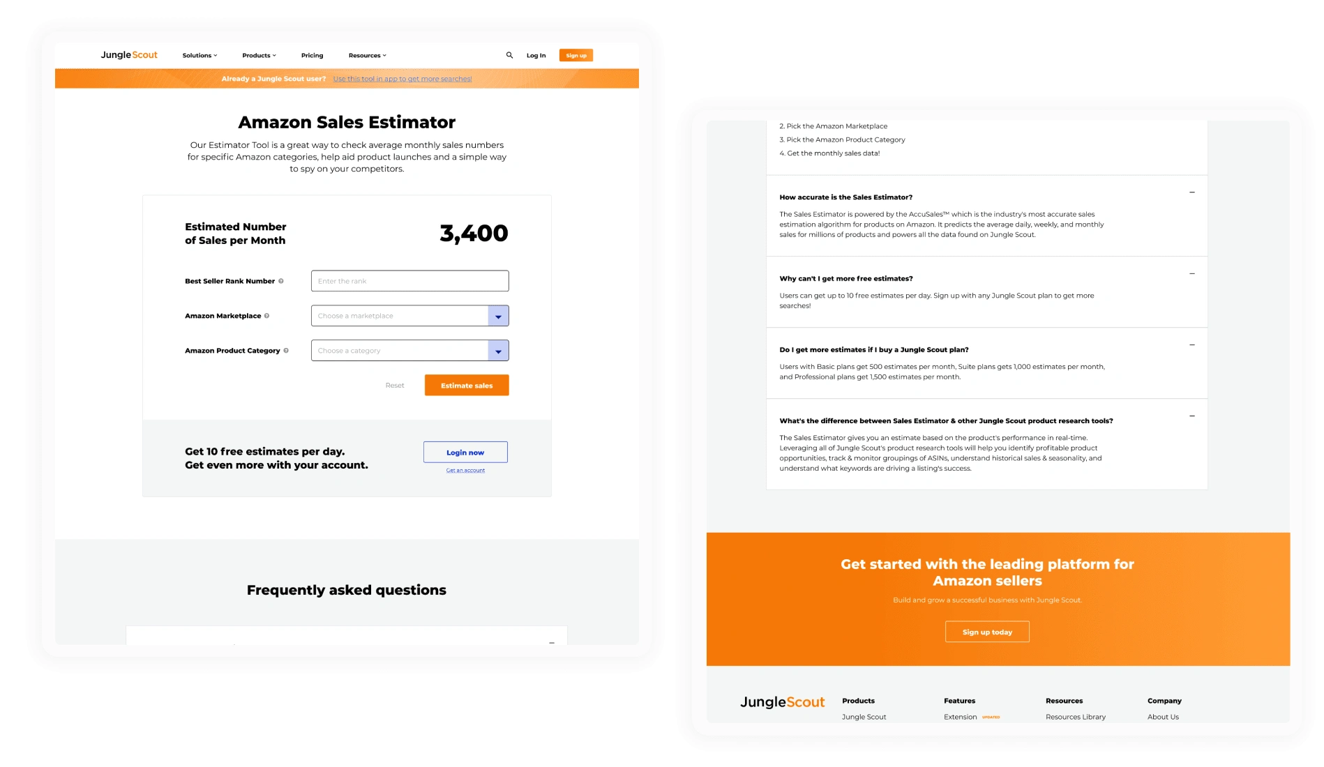 The Jungle Scout Sales Estimator is a popular tool that helps Amazon sellers gauge monthly sales using a product’s Best Sellers Rank. Despite its value, the original design was limited by an outdated interface and minimal interactivity.