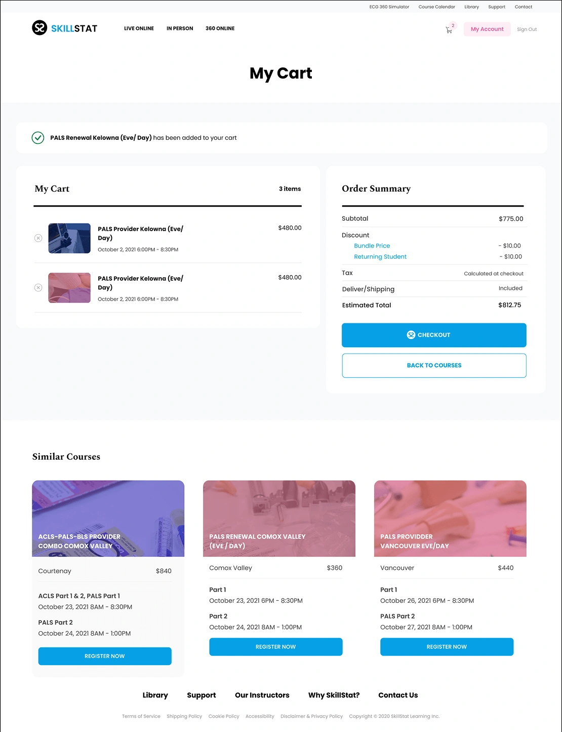 Register with confidence. Complete your SkillStat course purchase in a few easy steps: 1. Select your course → 2. Add participant info → 3. Confirm & pay. Learn. Certify. Save lives.